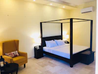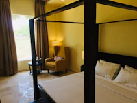 The rooms have its own unique personality, is elegantly and luxuriously furnished. Poster-beds with memory foam mattress draped with sheer, delicate fabric and exquisitely carved couches invite you to relax completely.